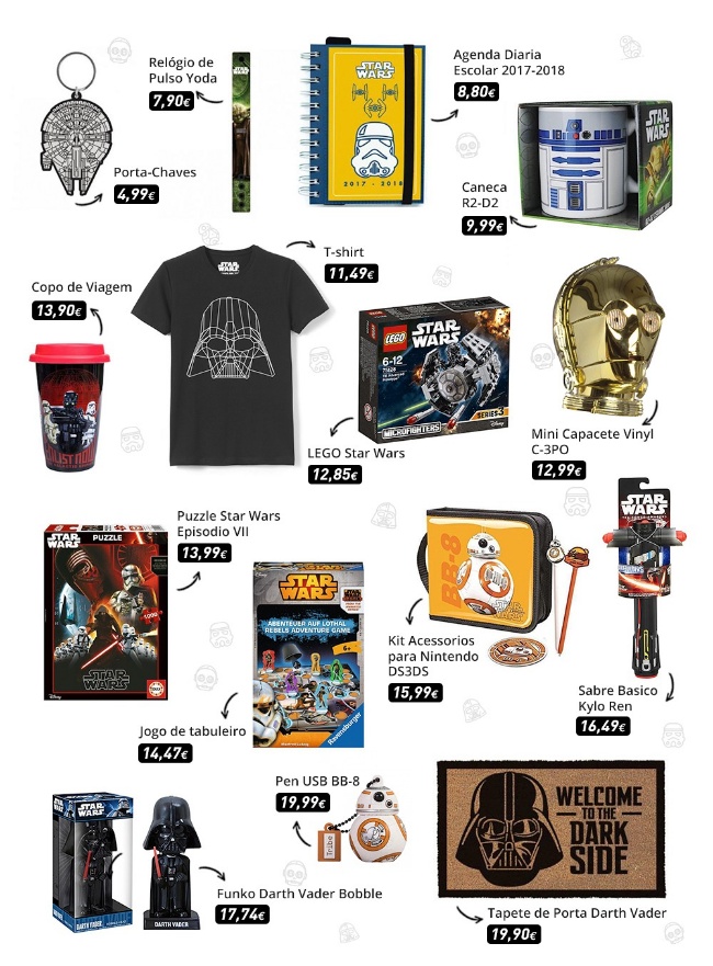 Já chegou às salas de cinema um dos filmes mais aguardados do ano. “Star Wars - Os Últimos Jedi” traz de volta personagens icónicas como Luke Skywalker, a princesa Leia e o Chewbacca. E já que estamos muito perto do Natal, o Dinheiro Contado escolheu os melhores presentes para os fãs de “Star Wars”, a menos de 20€. Agora já é possível deixar um verdadeiro apreciador feliz sem gastar muito dinheiro!